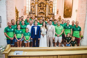 Marion Prutti, Bernhard Aigner, Martin Konlechner und Franz Bindhofer für die neuen Dressen !